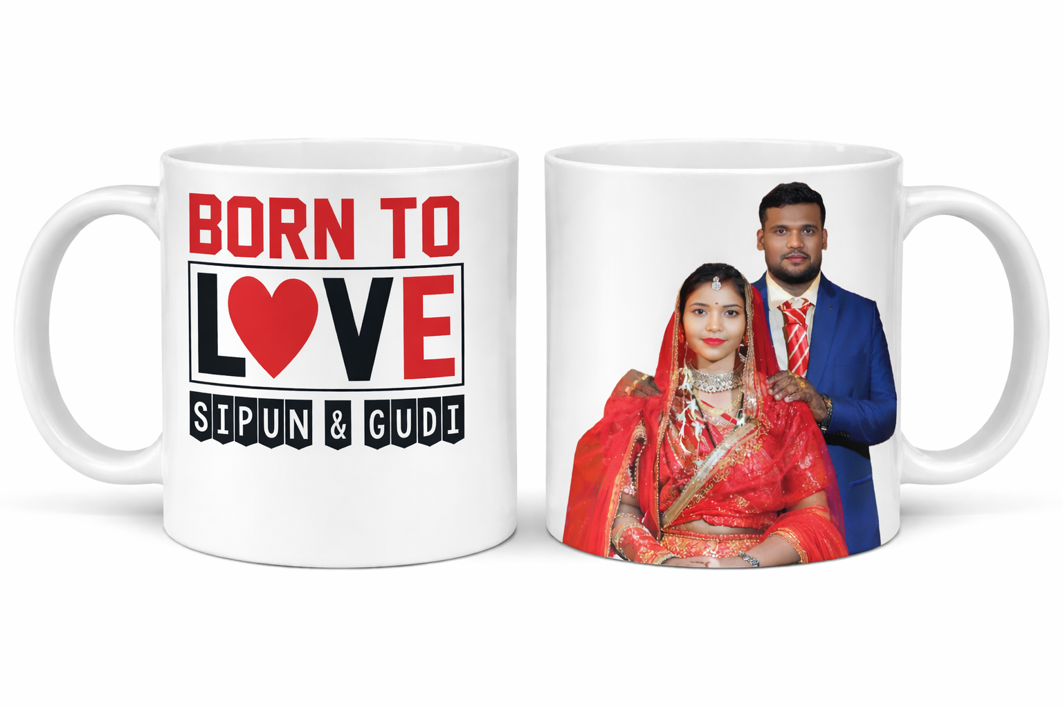 elebrate love every day with this beautifully designed personalized couple photo coffee mug, perfect for weddings, anniversaries, or romantic gifting. Featuring the bold “Born to Love” typography on one side and the custom couple photo on the other, this mug is a timeless keepsake that turns every coffee or tea moment into a memory.